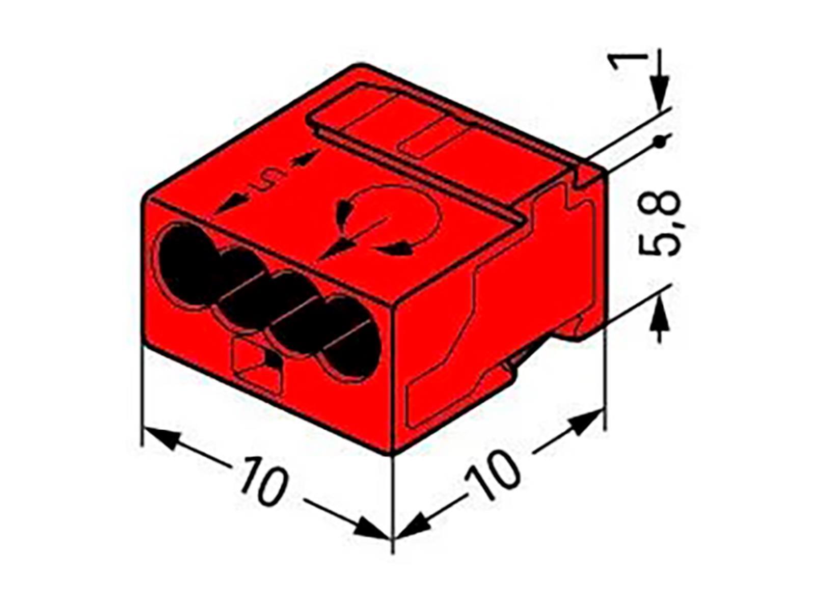• WAGO Art.-Nr. 243-804 • Bemessungsspannung: 100V • Bemessungsstrom: 6A • Anzahl klemmstellen: 4 • Verdrahtungsrichtung: seitlich • Maße: 10x6,8x10mm • Farbe: rot