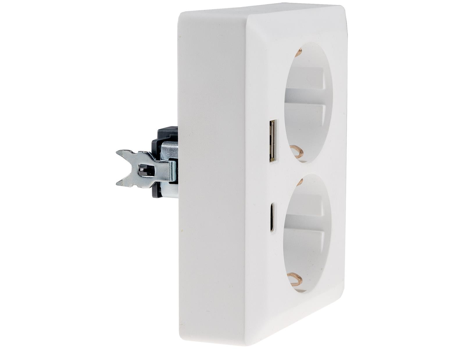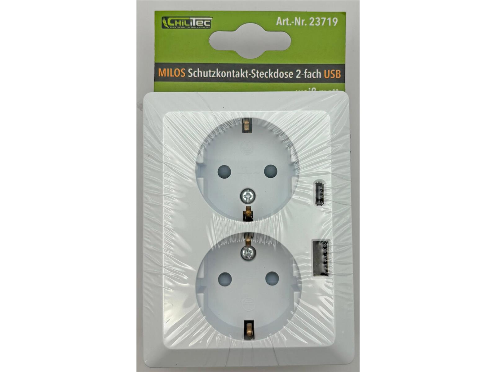 MILOS Steckdose zur Unterputzmontage. Besonderer Clou: Die 2-Fach Steckdose benötigt nur 1x Unterputz-Dose!