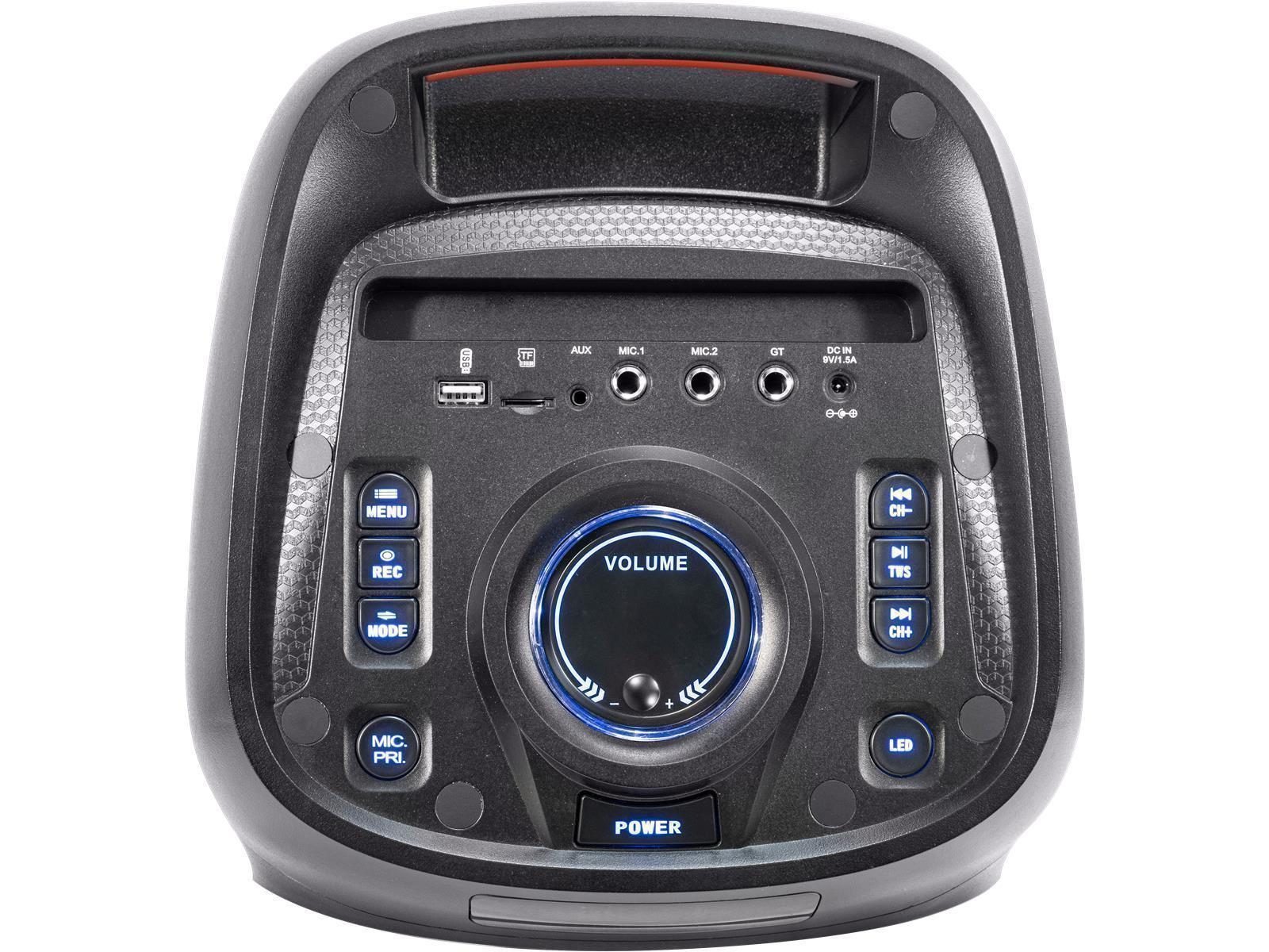 • Maße: 27x26x61cm • Gewicht: 13kg • 2 Basslautsprecher •Bluetooth • USB-Anschluss • REC- Funktion • Repeat-Funktion • Spannung: 230V • Leistung: 500W • Verbrauch: 40W • LED-Display • Batterie: 7,4V • 3600mAh