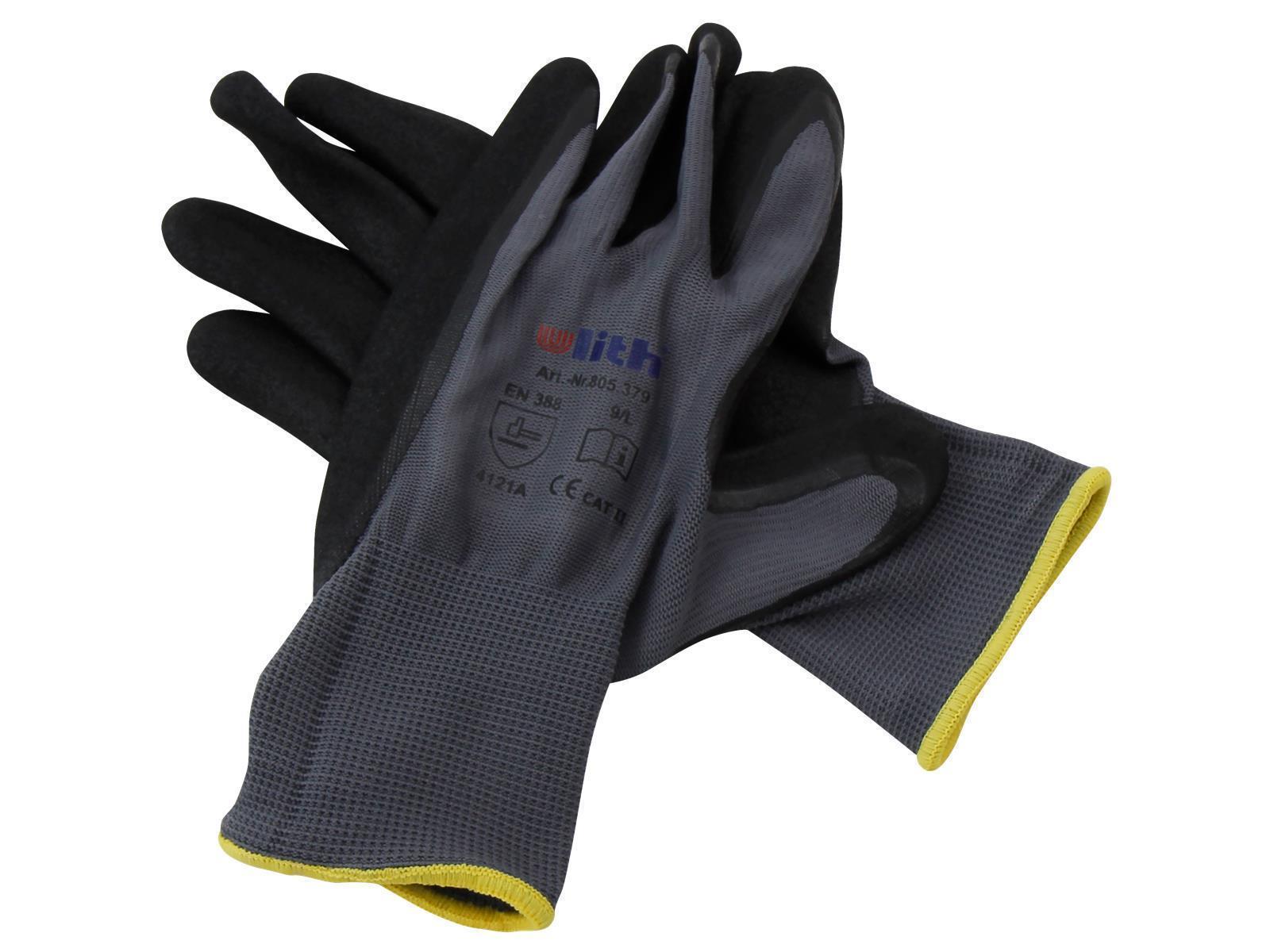• Montage-Nitril-Feinstrickhandschuhe • graues-13G Trägermaterial • schwarze Nitril-Beschichtung • sandiert für besseren Grip und feines Tastgefühl • ergonomische Passform • EN388 Schutz vor mechanischen Risiken (Abrieb-, Schnitt, Reiß- und Durchstichfestigkeit)