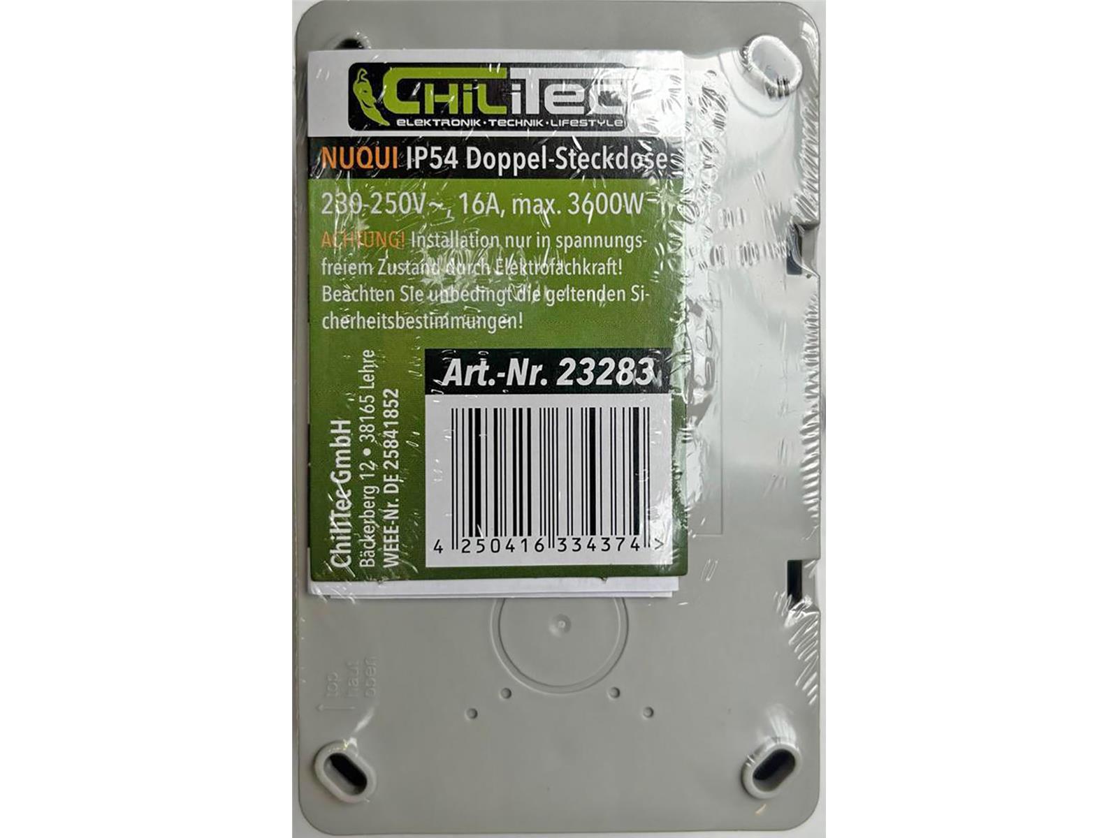 Produktinformationen "NUQUI Feuchtraum Doppel-Steckdose horizizontal IP54, Aufputz, 250V~/ 16A"