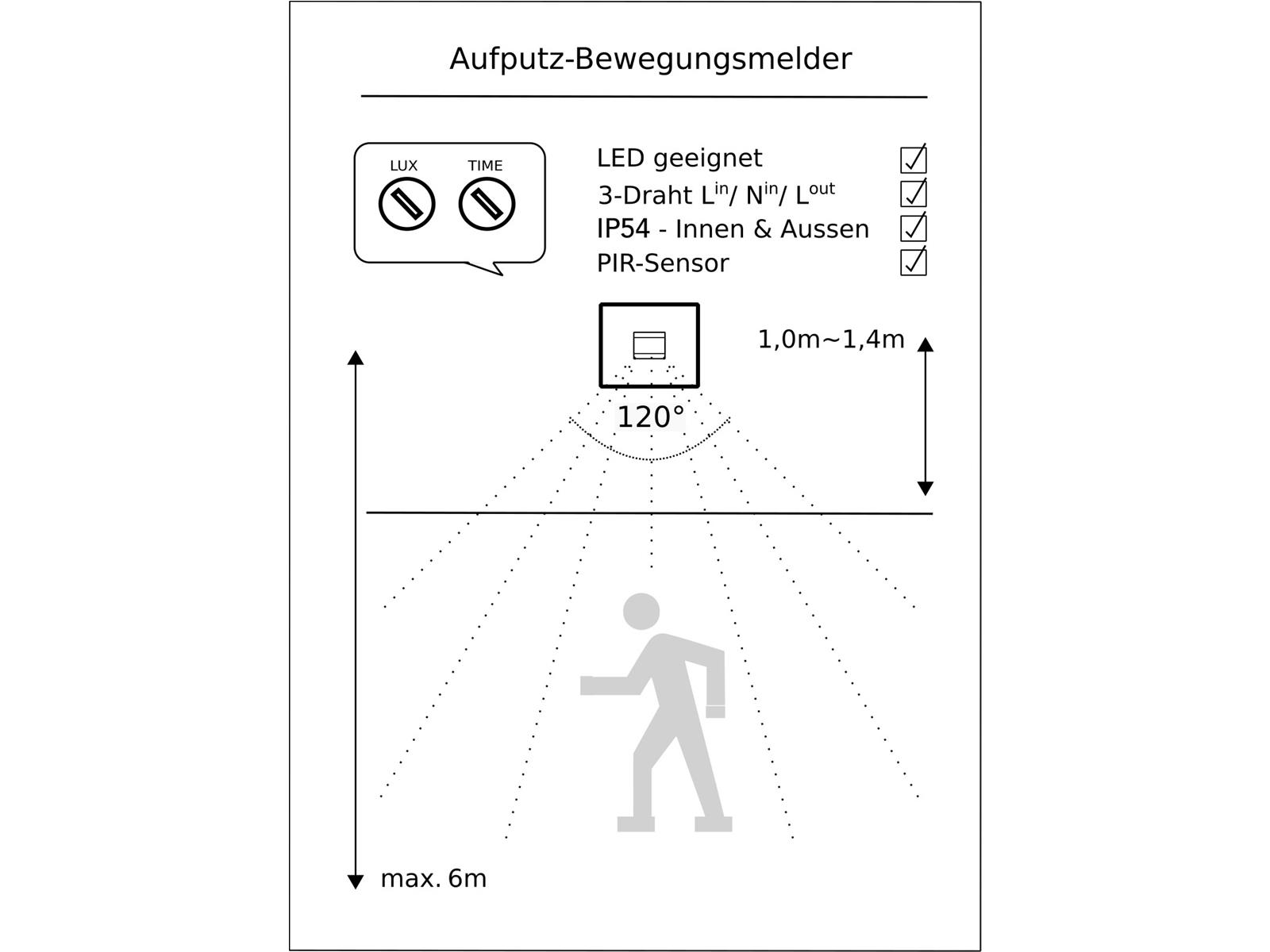 • Erfassungswinkel 120°