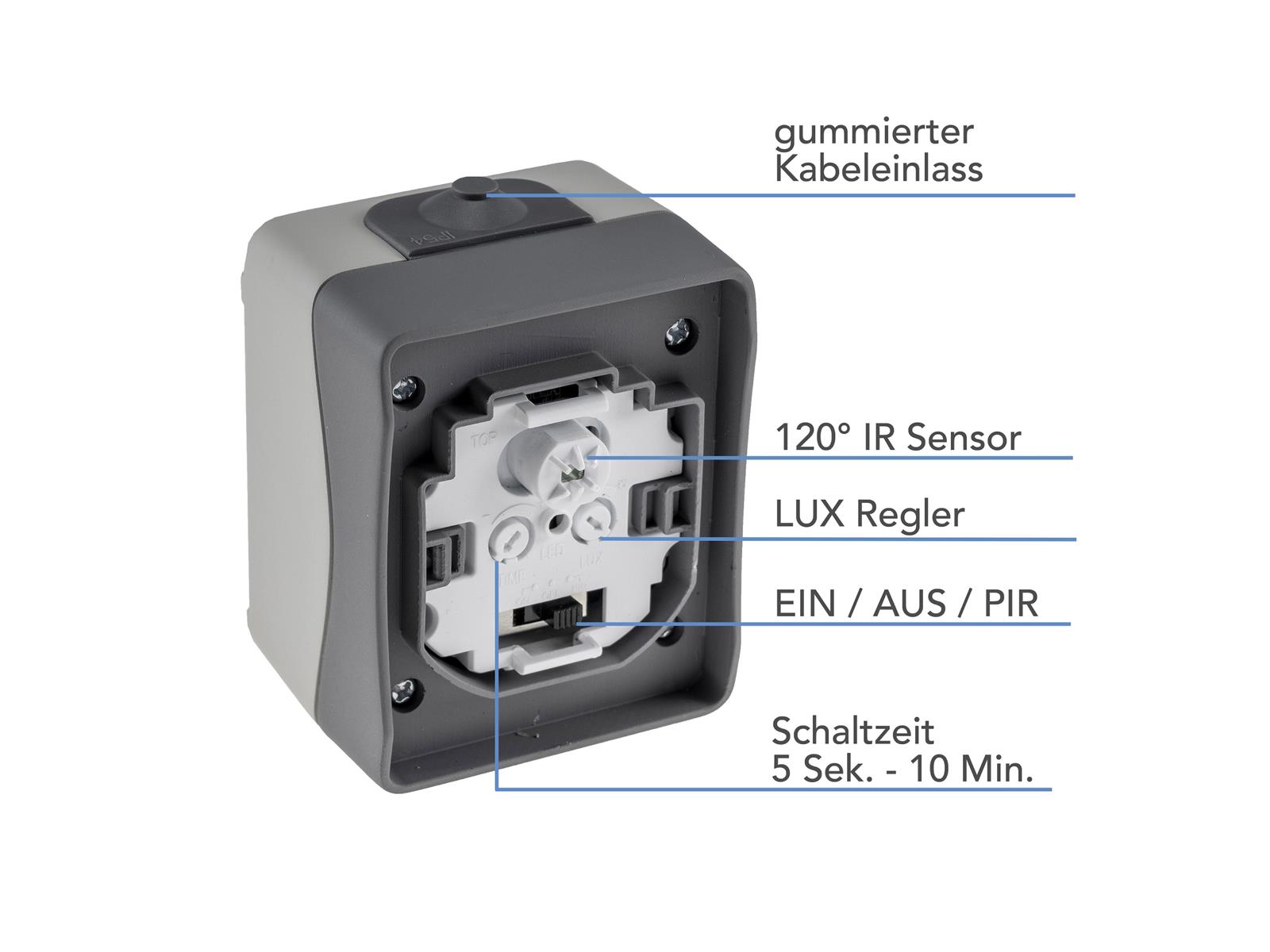 • Dämmerungs-Schaltschwelle einstellbar (2-1000Lux)