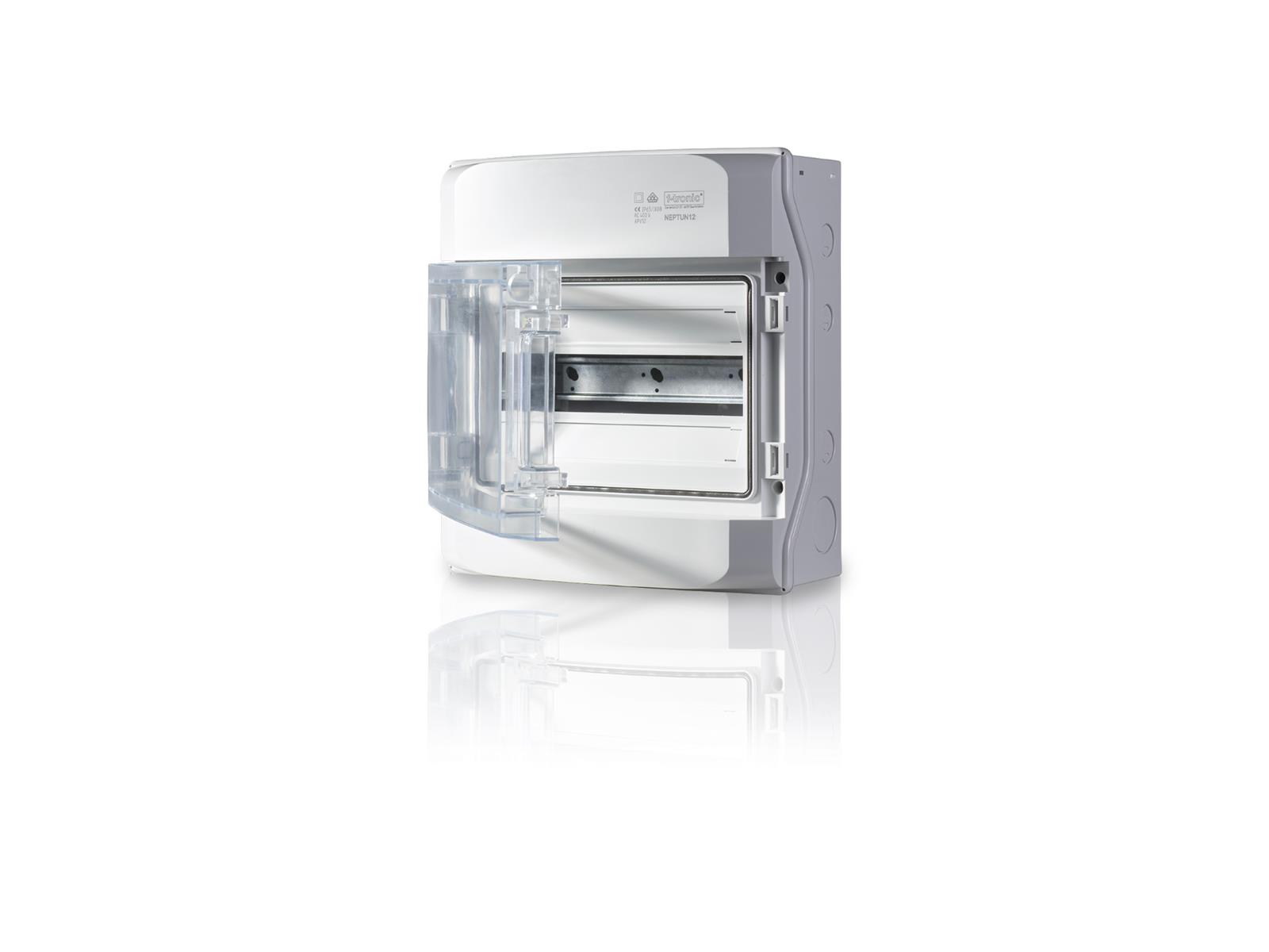• 1-Reihiger Verteiler F-Tronic mit mit 12 Module und IP65 Schutzart für Geräte bis 63A.