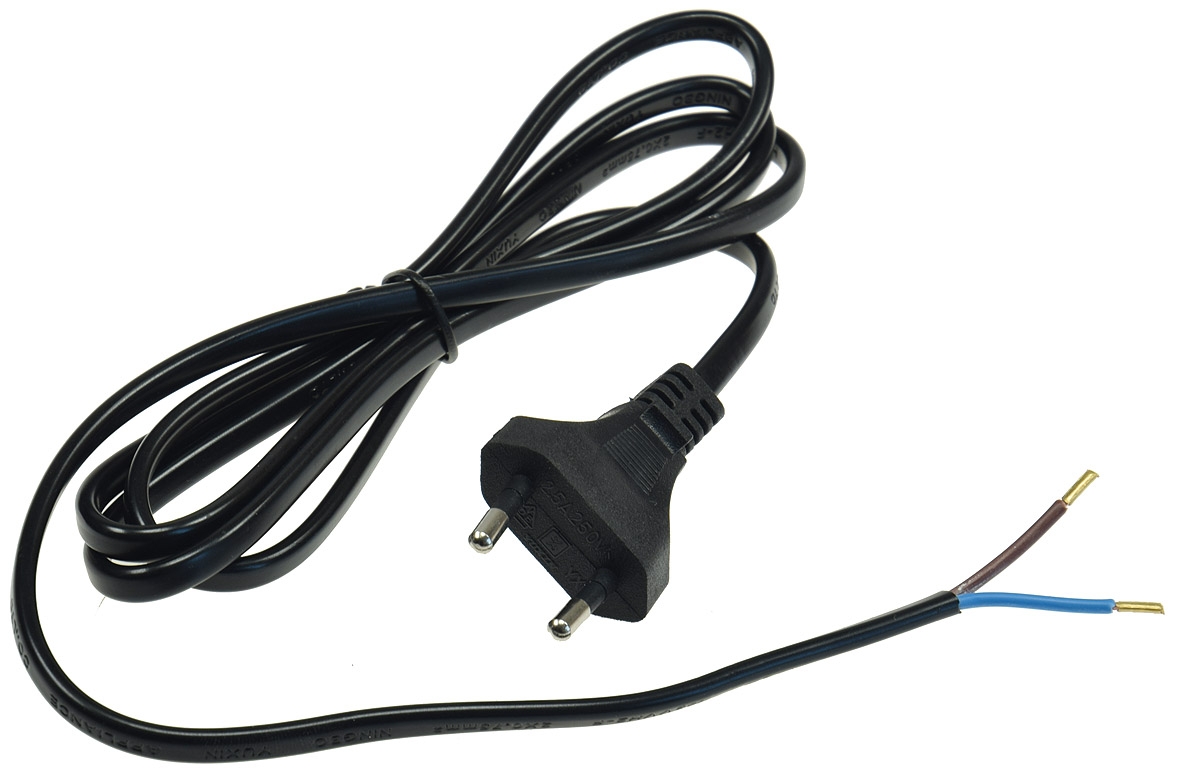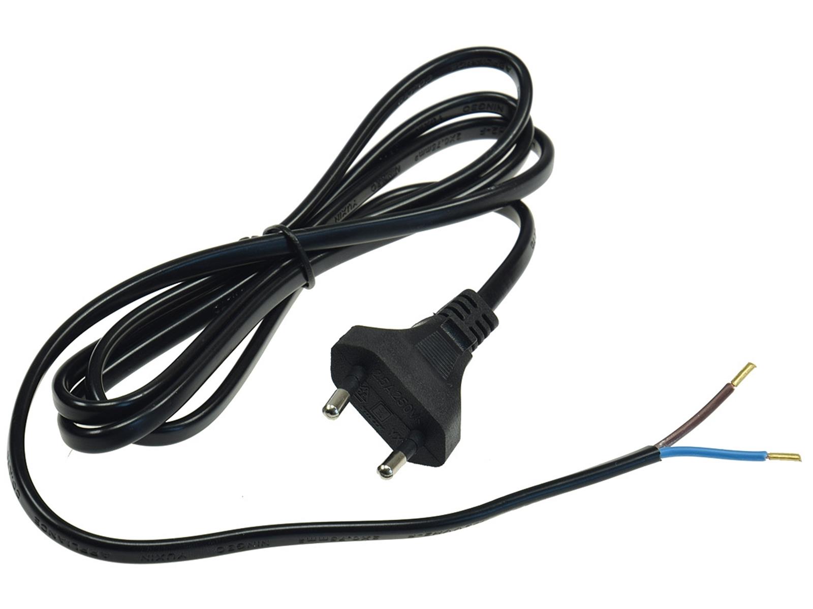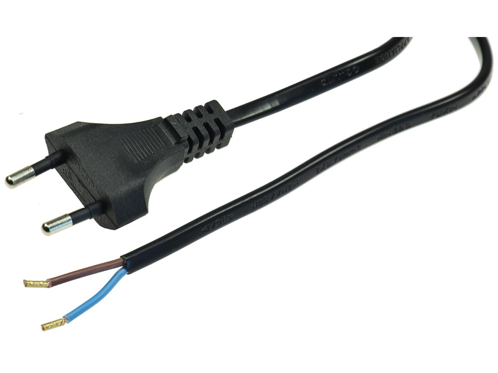Klassische Netzleitung mit 2 blanken Enden mit Aderendhülsen, H03VVH2-F, 2x 0,75mm², 2,5A/250V, VDE