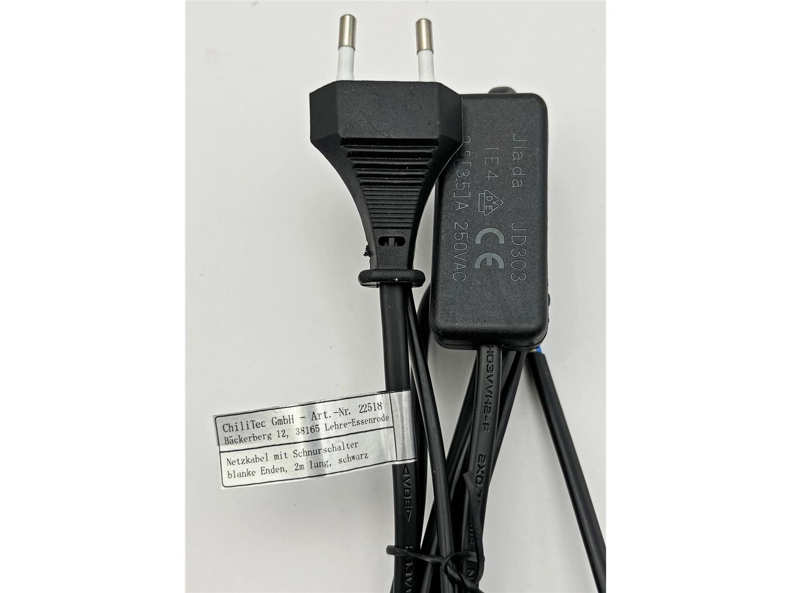 Produktinformationen "Netzkabel mit Schnurschalterblanke Enden, 2m lang, schwarz"