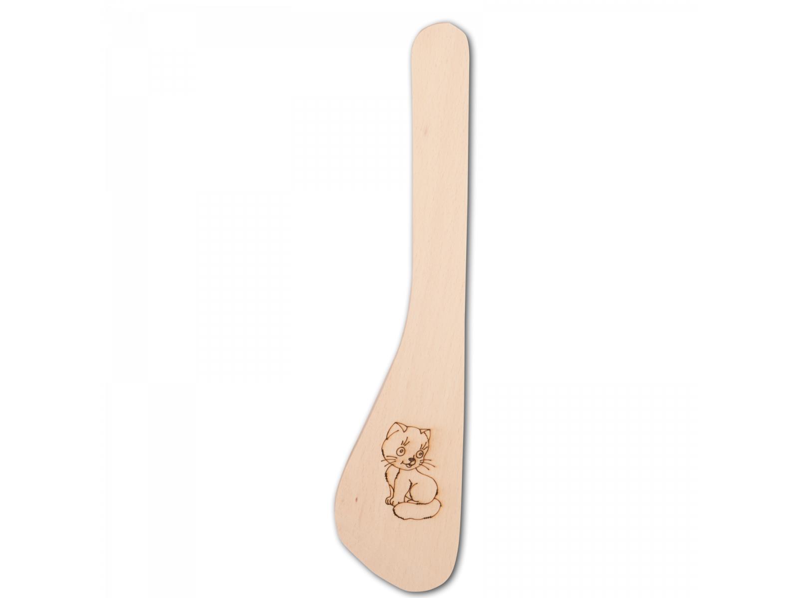 Produktinformationen "Pfannenwender, französische Form, mit Motiv Katze, aus Holz 30 cm"
