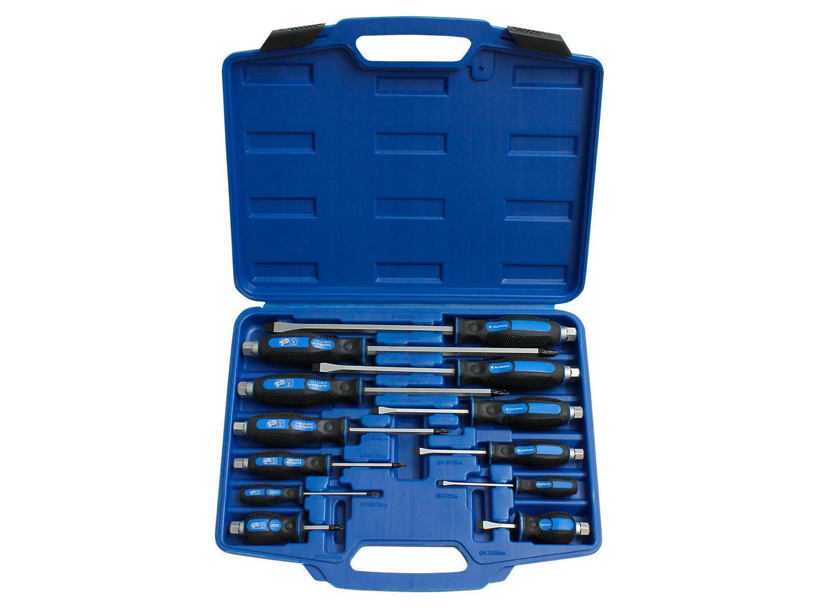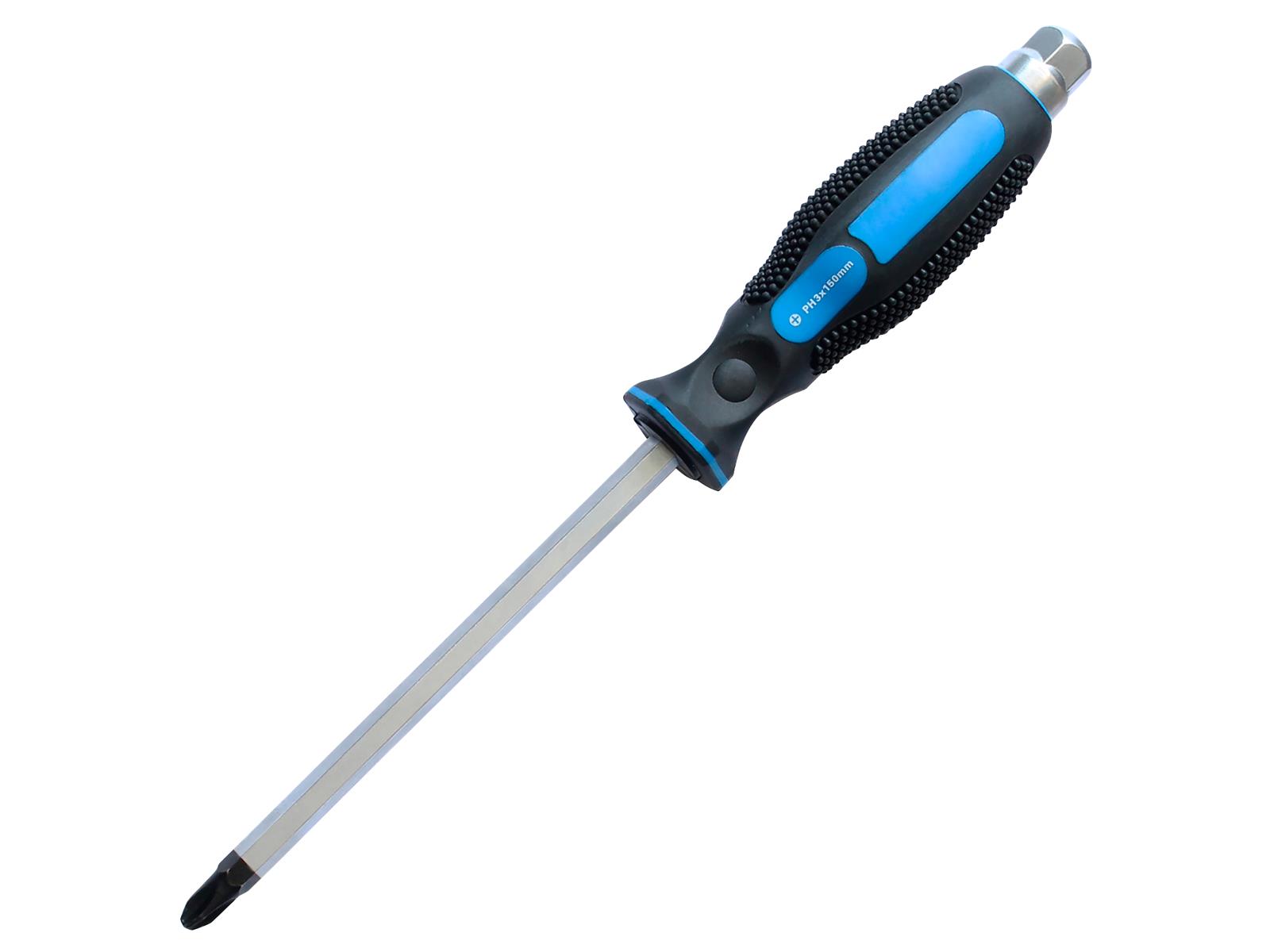 • Werkstatt- und Industriequalität • Sechskantklingen aus Chrom-Vanadium-Stahl • Klingen verchromt und poliert • Black-Point-Abtrieb • mit ergonomischem 2-Komponenten-Heft • mit Außensechskant-Schlagkappe • Steck- und Schraubenschlüssel als Drehkraftverstärkung adaptierbar • Größen in mm: Schlitz 3,0 x 75, 5,0 x 100,6,0 x 38, 6,0 x 100, 8,0 x 150 , 9,5 x 200: Kreuzschlitz(PH) 0 x 75, 1 x 75, 2 x 38, 2 x 100, 3 x 150, 4 x 200