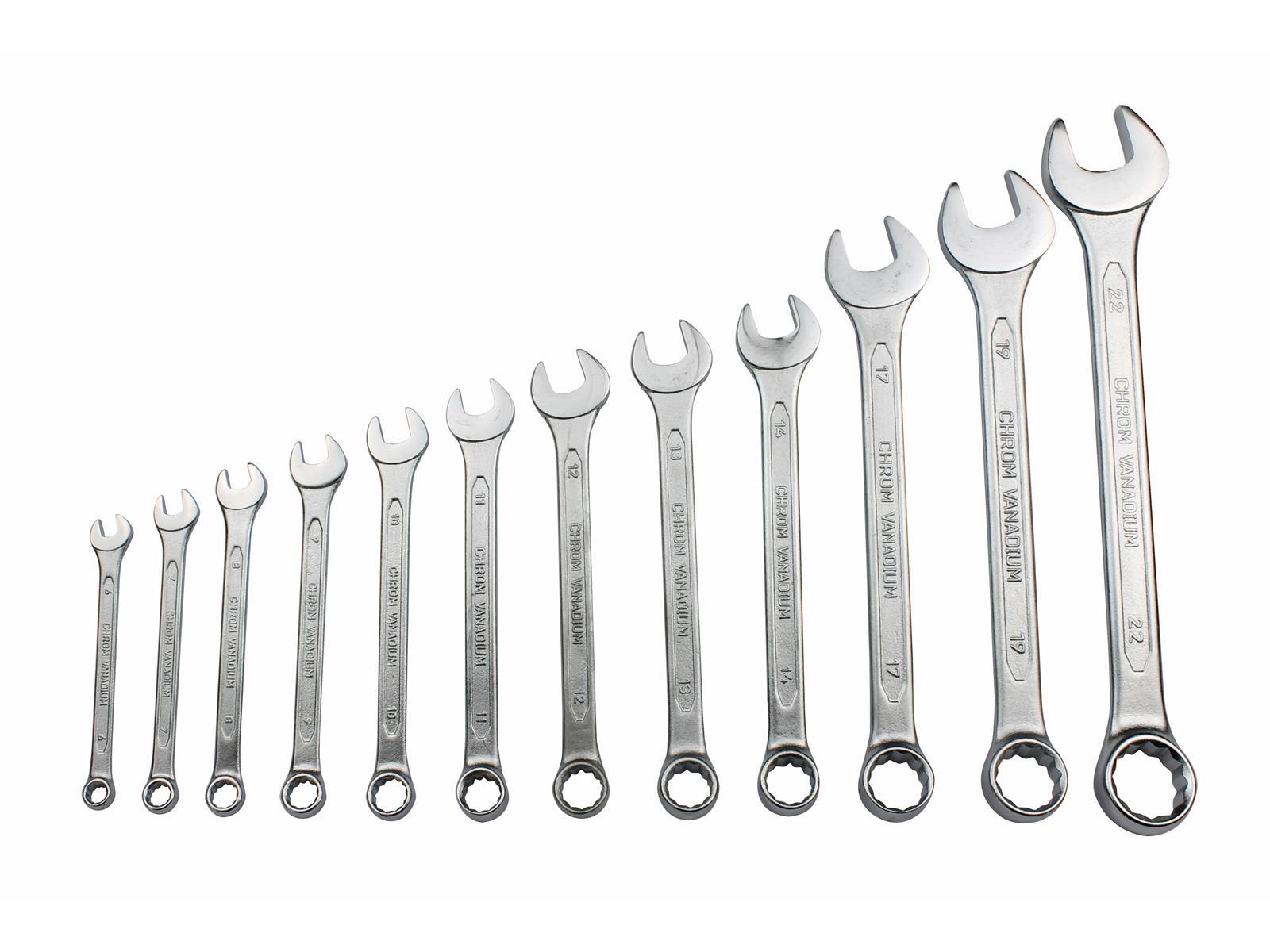 Produktinformationen "Ring-Gabelschlüsselsatz 12-teilig, 6-22mm, Cr-V, verchromt"