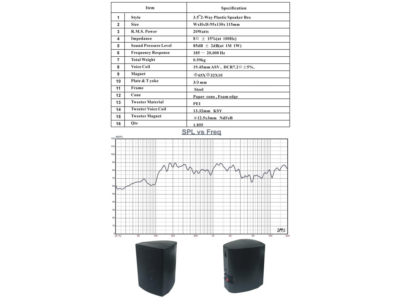 Unschlagbares Lautsprecher Duo für das Wohnzimmer, den Arbeitsplatz oder Kinderzimmer. Lautsprecher Paar mit 3,5" Woofer und brillantem Hochtöner. Klemmanschlüsse auf der Rückseite, ebenso eine Aufhänge Vorrichtung für die Wandmontage.