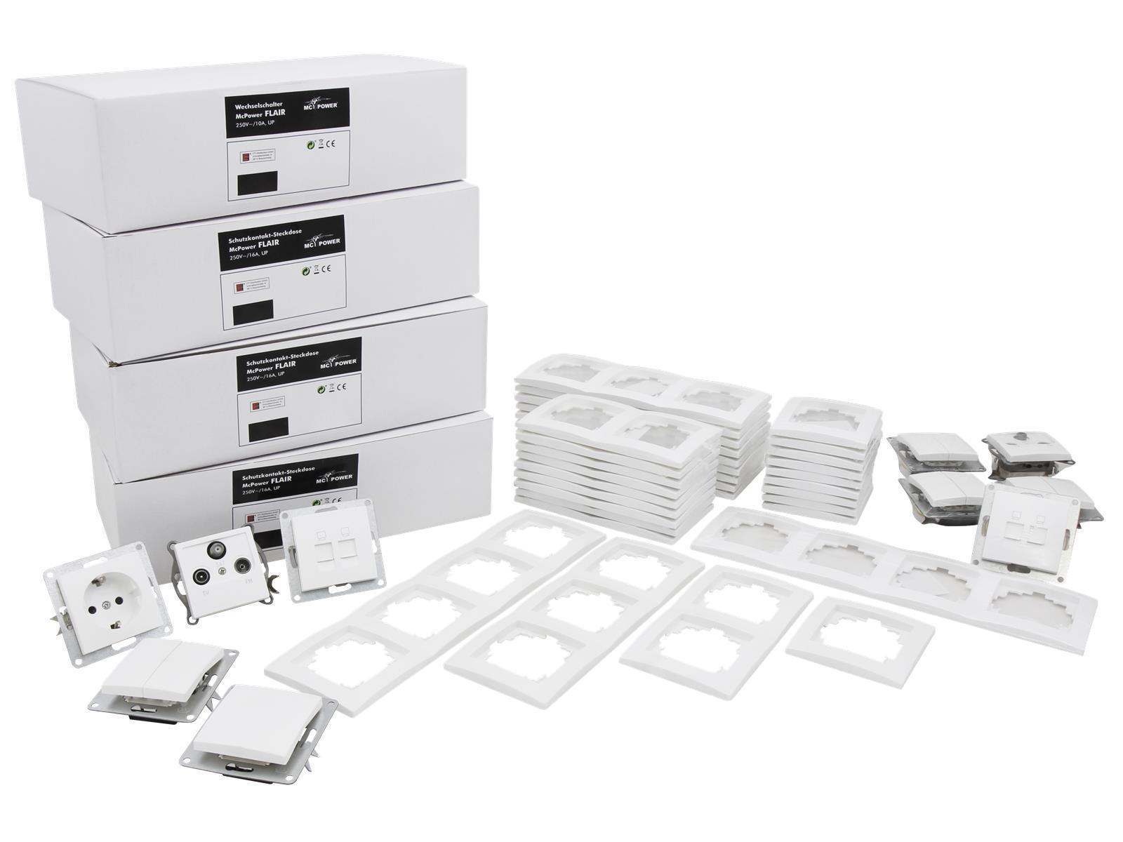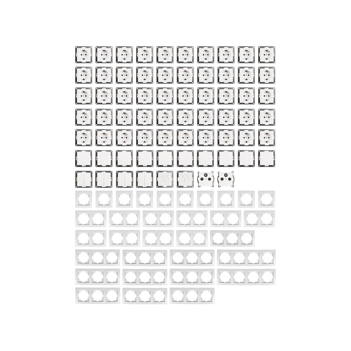 Optimales Set um ein komplettes Haus oder 2 Wohnungen mit Lichtschaltern, Wandsteckdosen sowie den nötigen SAT Dosen und Internetdosen auszustatten.