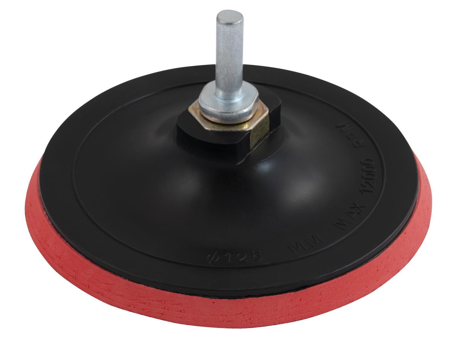 • Schleifteller mit Klettverschluss • Ø125mm • z.B. für Bohrmaschinen, Winkelschleifer, Akkuschrauber • 8mm Schaft • Mutter: M14 • max. Drehzahl 12500U/min
