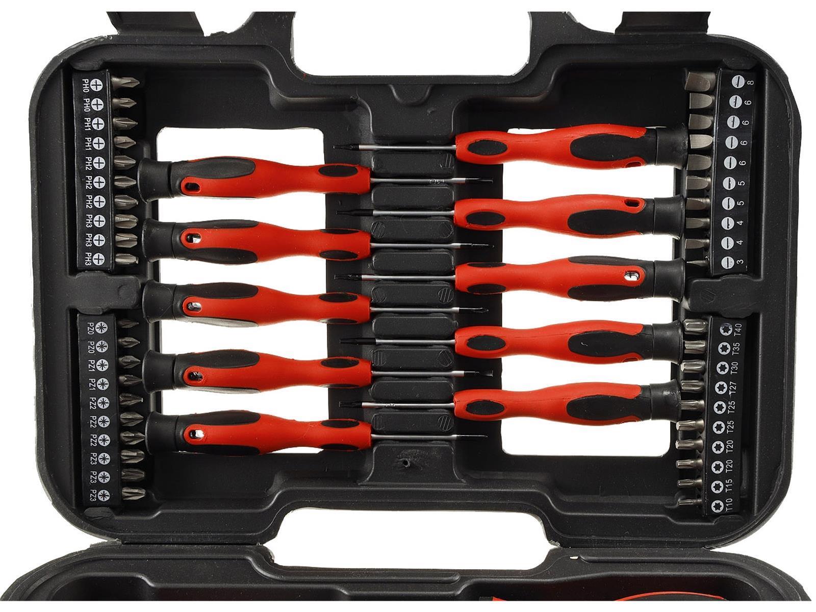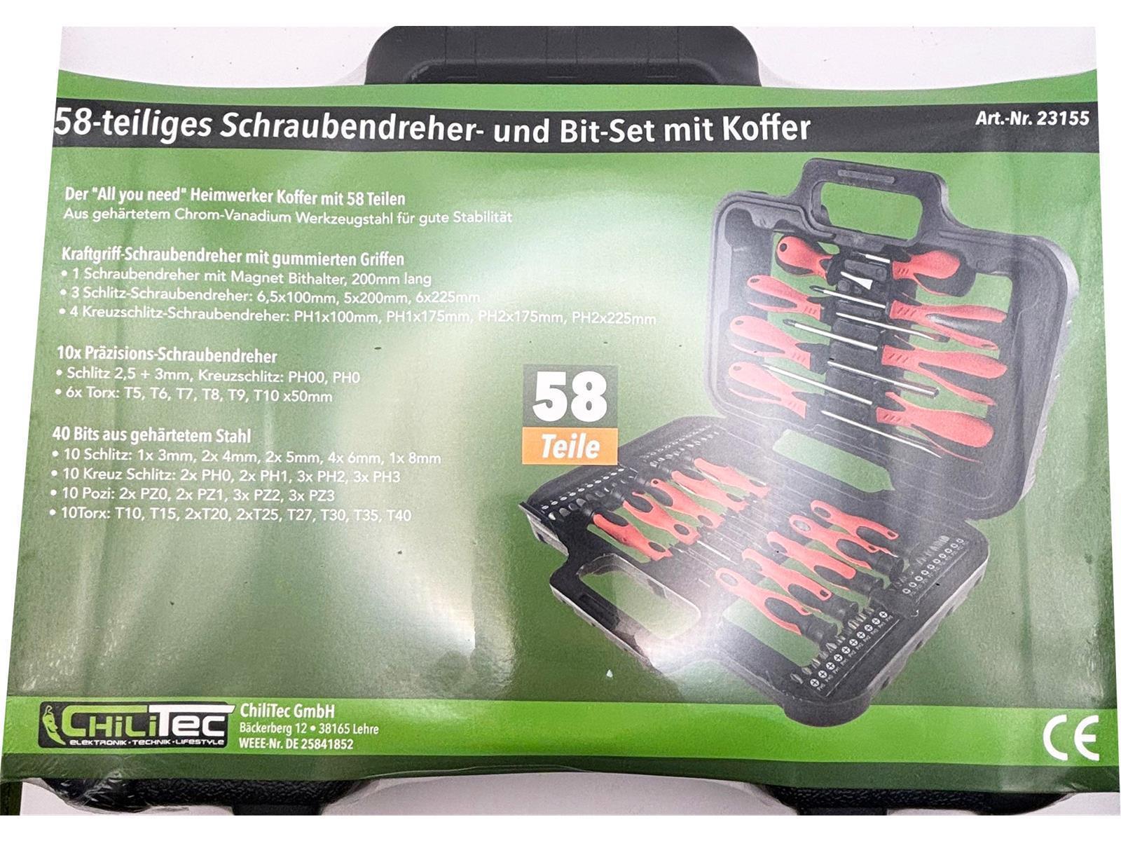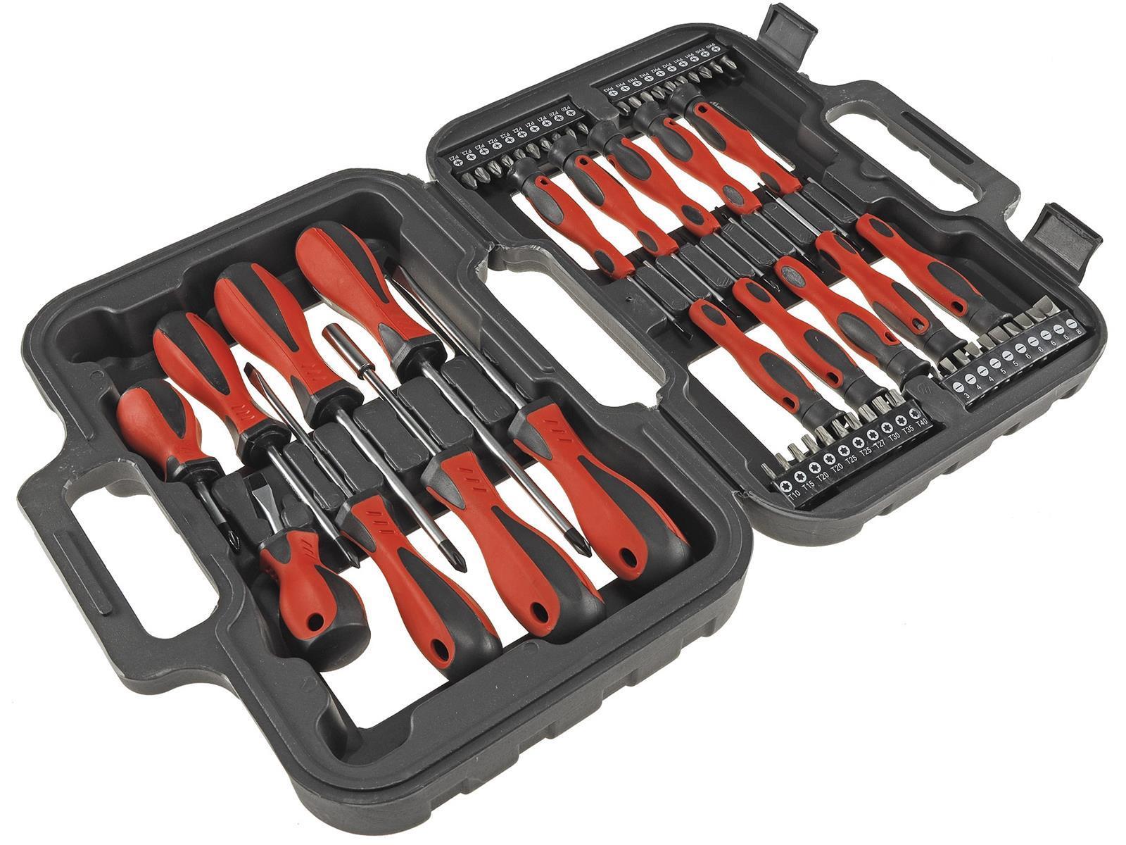 Der All you need Heimwerker Koffer mit 58 Teilen. Robuste Schraubendreher mit gummierten Kraftgriffen bieten maximalen Halt bei der Arbeit. Gehärteter Chrome-Vanadium Werkzeugstahl für langfristige Haltbarkeit. Das Set beinhaltet in Summe 18 Schraubendreher in einer für Sie ausgesuchten Konfiguration, wie in Haushalten meist gebraucht. Lieferung in praktischem Transportkoffer.