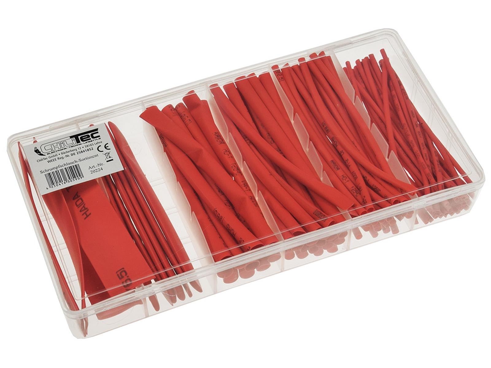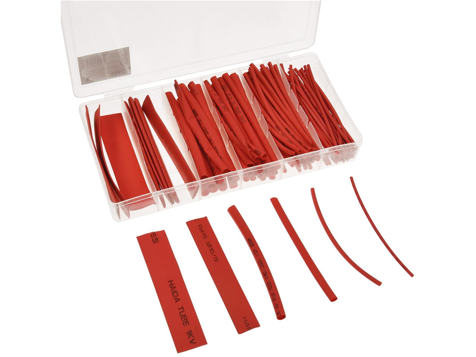 Produktinformationen "Schrumpfschlauch-Sortiment, 100-teiligin praktischer Box, rot"
