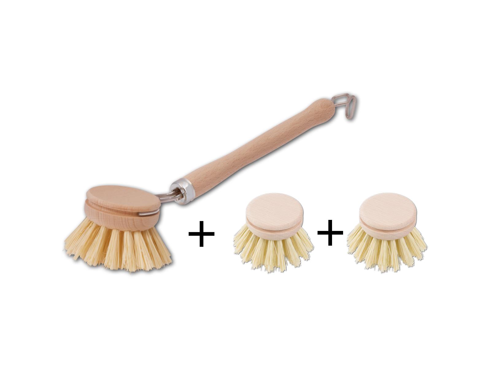 Produktinformationen "Set Spülbürste, echt Fibre, kleiner Kopf + 2x Ersatzkopf, aus Holz 15 cm"