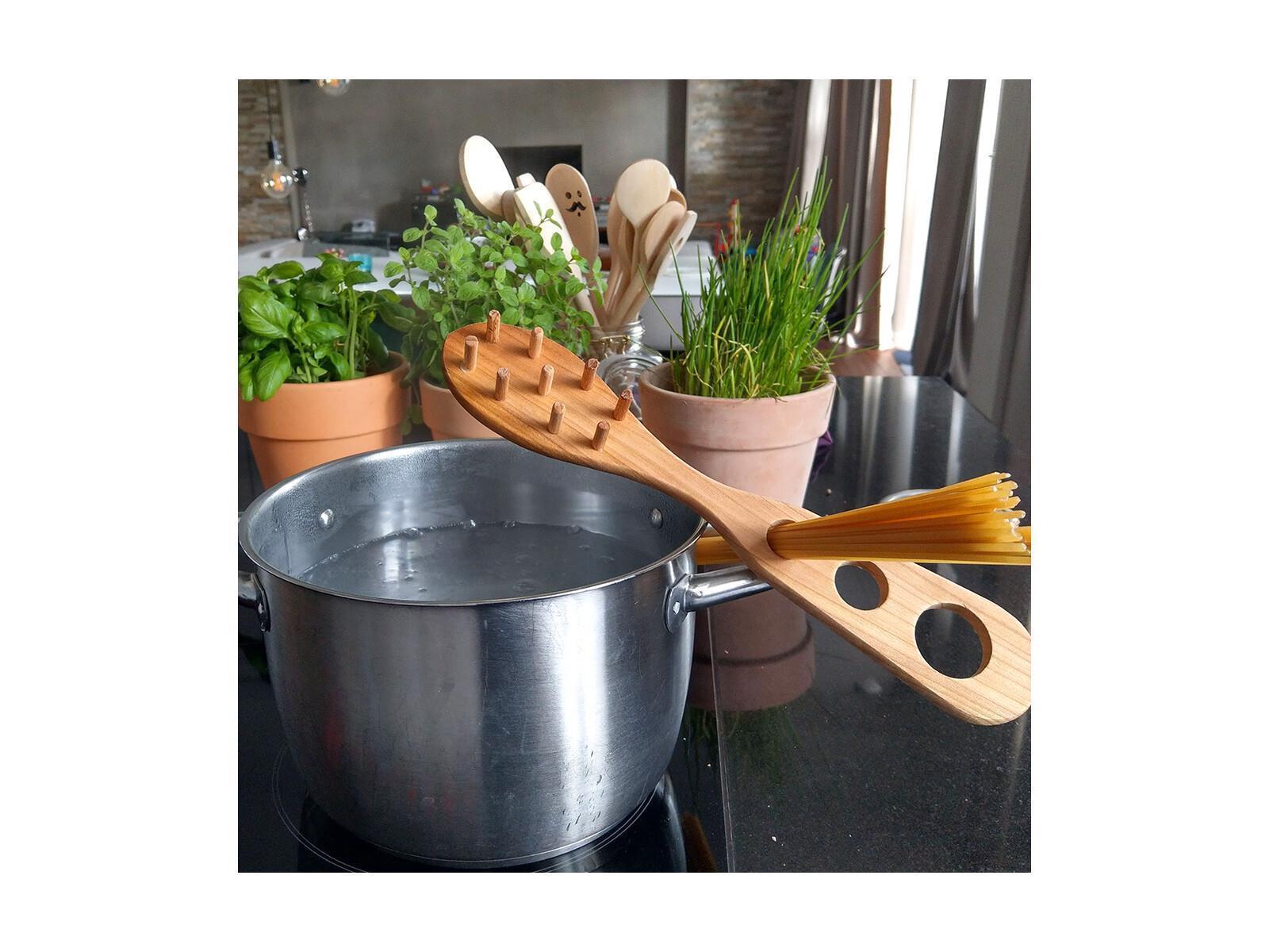 Holz-SpaghettimaßEU-Naturprodukteinfaches Messen für die richtige Pasta Menge, genaues Portionieren von Spaghetti, Plastikrei, recycelbarer Spaghetti Portioniereaus Kirschenholz, geöltkombiniert mit eineSpaghettihebe32 cm, 32 5,8 x 3 cm ?EINFACHES MESSEN VON SPAGHETTI: Z um Abmessen der gewünschten Portion, schiebe einfach ein Bündel Spaghetti durch das entsprechende Loch des Küchenhelfers, Je größer die Anzahl der Personen für die du kochen möchtest, umso größer die Nudel Portion und das auszuwählende Loch des Spaghettihebers, ?KEINE NUDEL ZU VIELUnser Spaghetti Portionierer hat insgesamdrei Löcher haben einen Durchmesser von 2, 3 und 3,5 cmum den unterschiedlichen Bedürfnissen gerecht zu werden und die Menge der Nudeln genau zu beherrschen, Es bietet dir die perfekte Möglichkeit, um Lebensmittelverschwendung zu reduzieren und Geld zu sparen, ??