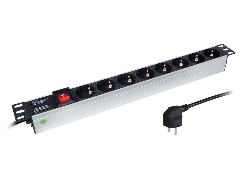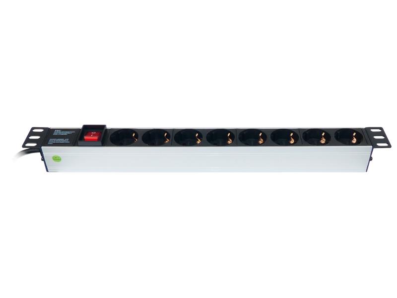 Steckdosenleiste für Rackeinbau 19'', Aluminium, 8-fach, max.3.500W /16A