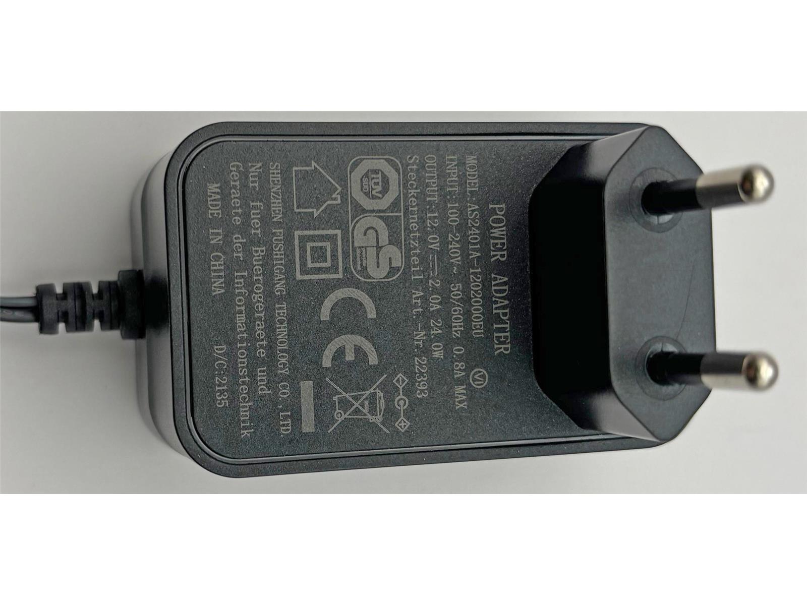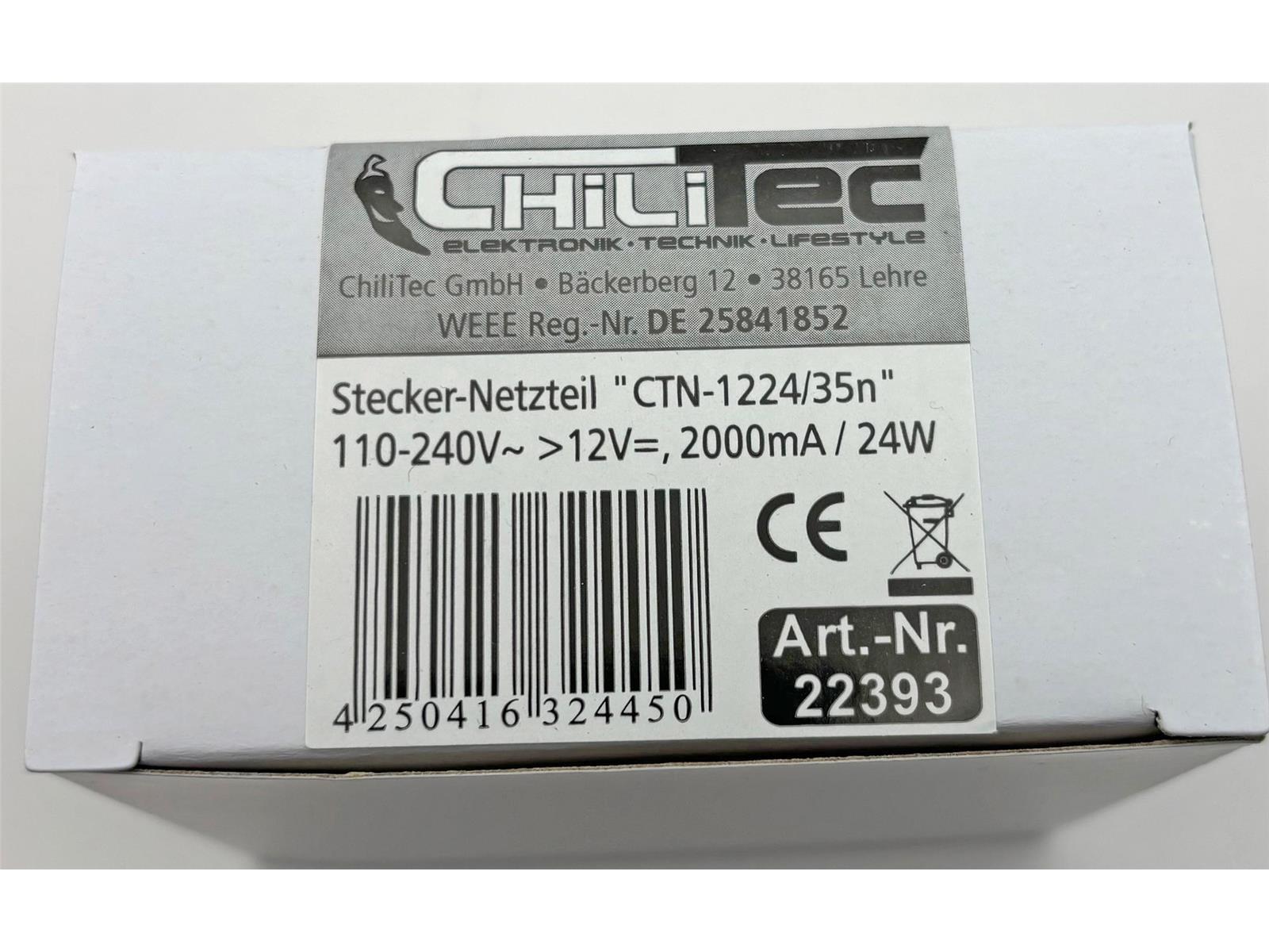 Produktinformationen "Stecker-Netzteil "CTN-1224/35n"110-240V~ >12V=, 2000mA / 24W, 3,5mmKoax"