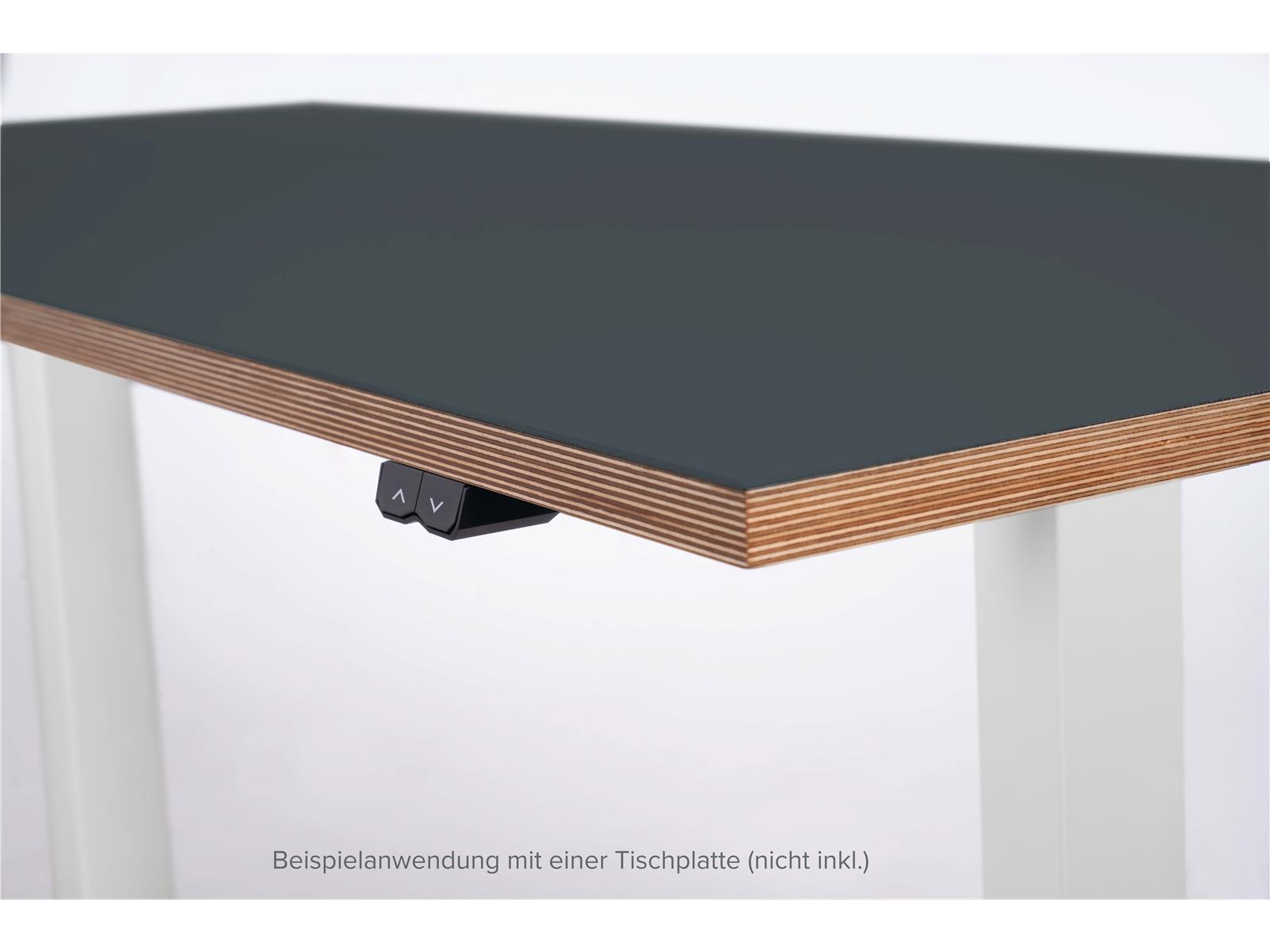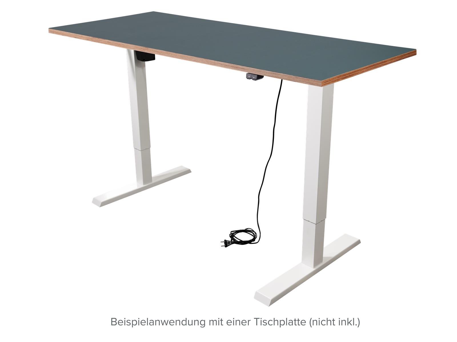 • elektrisch höhenverstellbar per Knopfdruck: 73 bis 123cm • Breite einstellbar: 84-130cm • geeignete Tischplattenbreite: 90-150cm • geeignete Tischplattentiefe: 60-85mm • maximale Nutzlast 70kg • starker Motor mit einer Geschwindigkeit von max. 28mm pro Sekunde