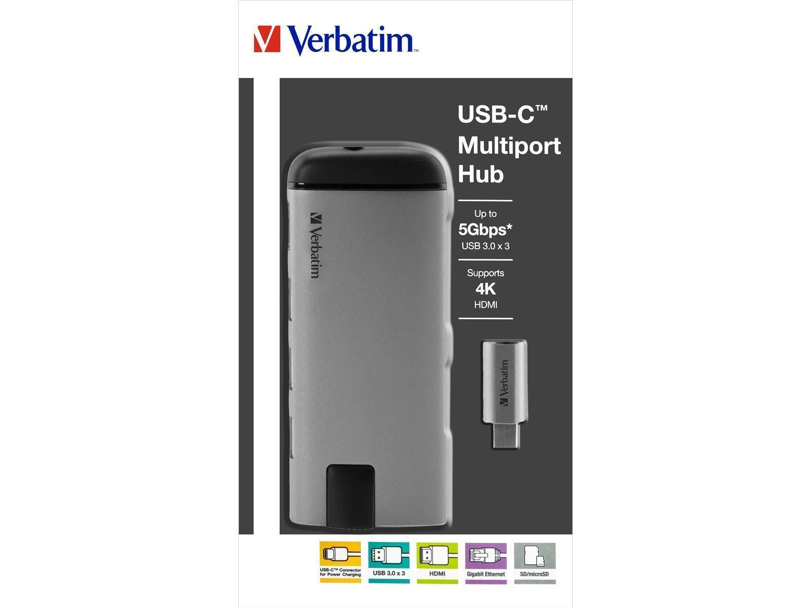 Produktinformationen "USB-C Multiport-Hub von Verbatim, USB 3.0, HDMI, SD, Ethernet, 15cm Kabel"
