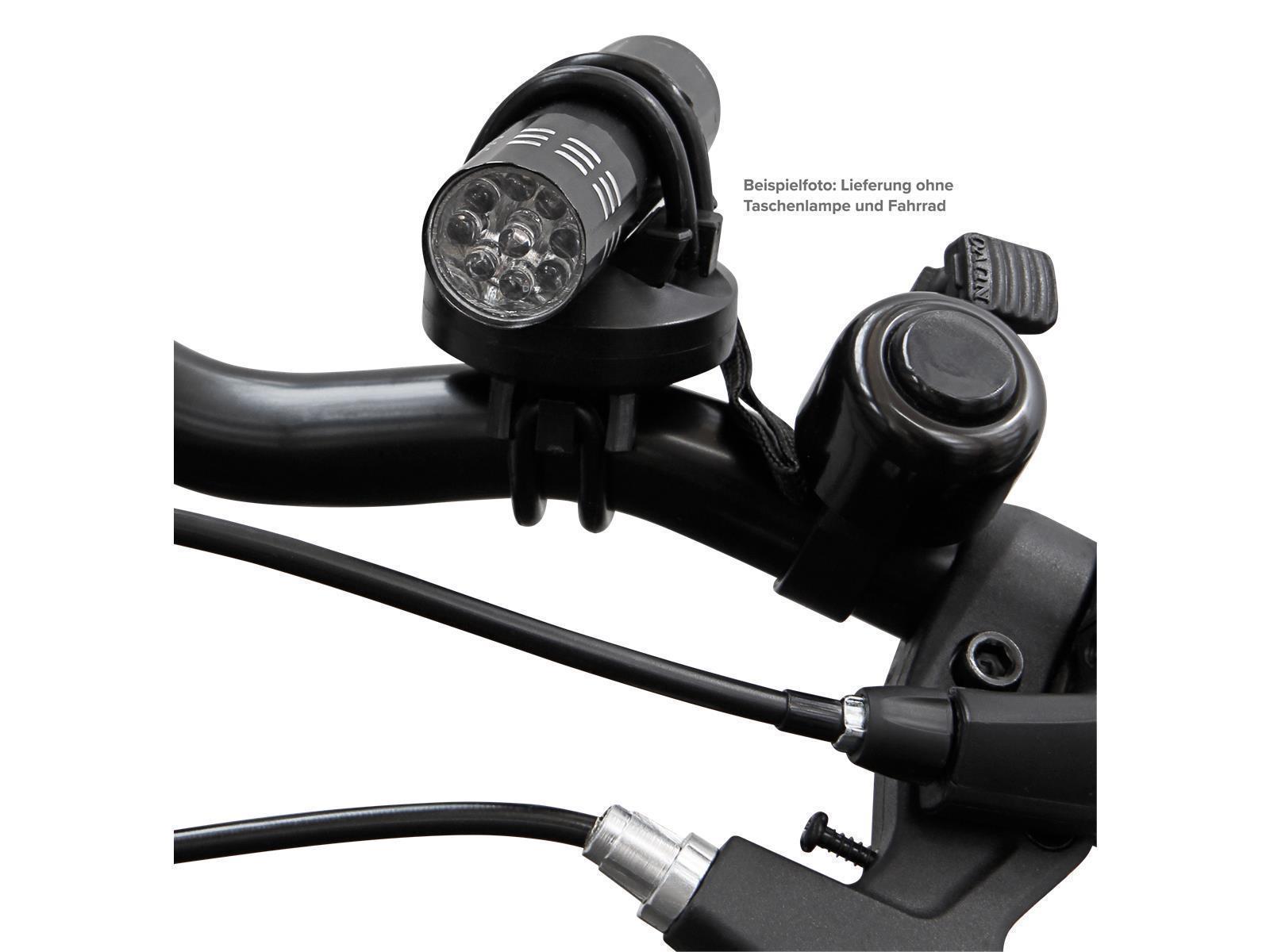 • kompatibel mit allen Fahrradlenkern und Taschenlampen mit einem Durchmesser von 10 bis ca. 35mm • schnelle und einfache Montage • flexible Gummiringe zur Montage • drehbar