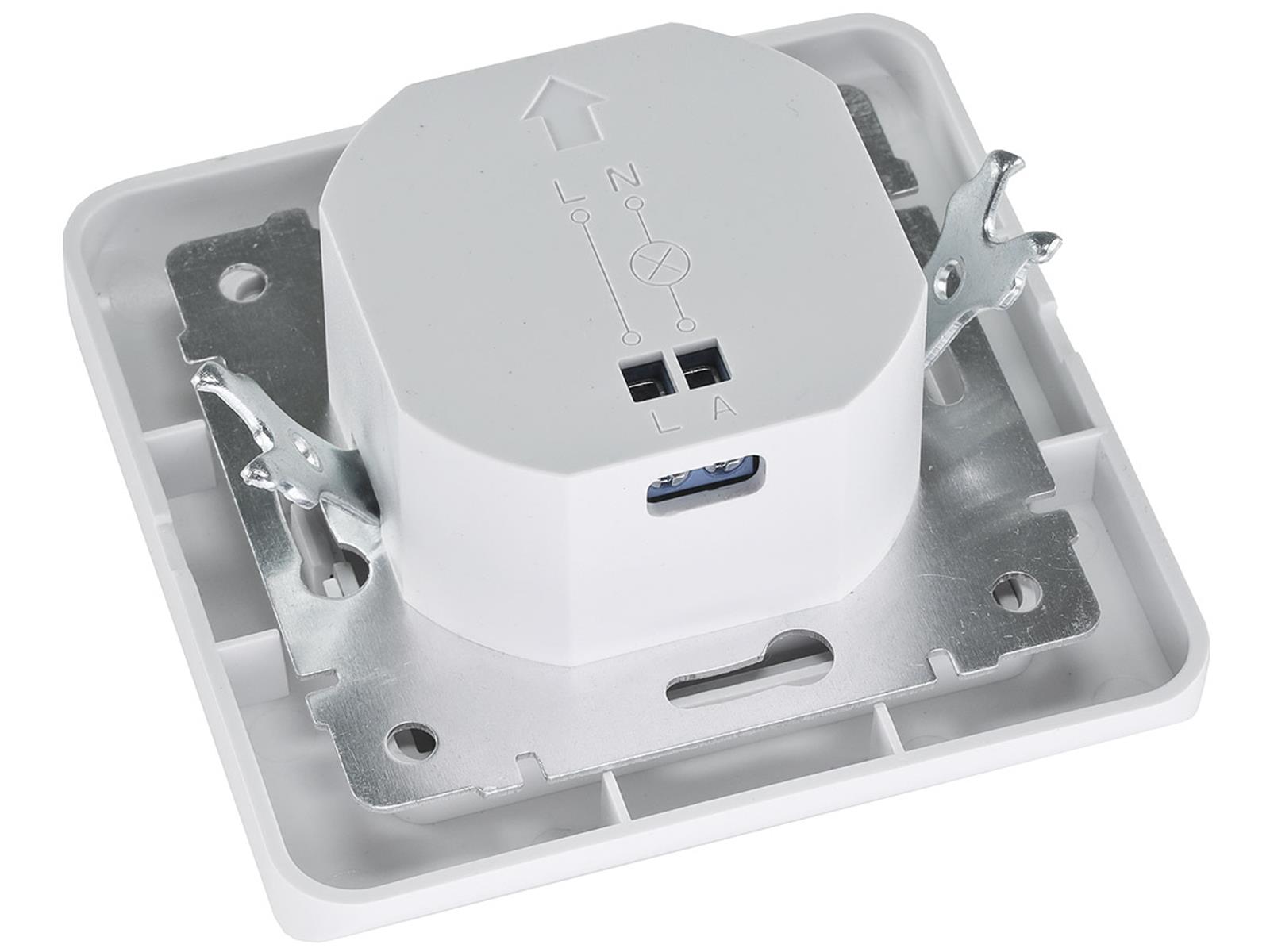 Dieser komfortable PIR Bewegungsmelder ersetzt direkt einen EIN/AUS Schalter (nicht geeignet für Wechselschaltung!) Startet bereits ab 1 Watt - ideal auch für LED!