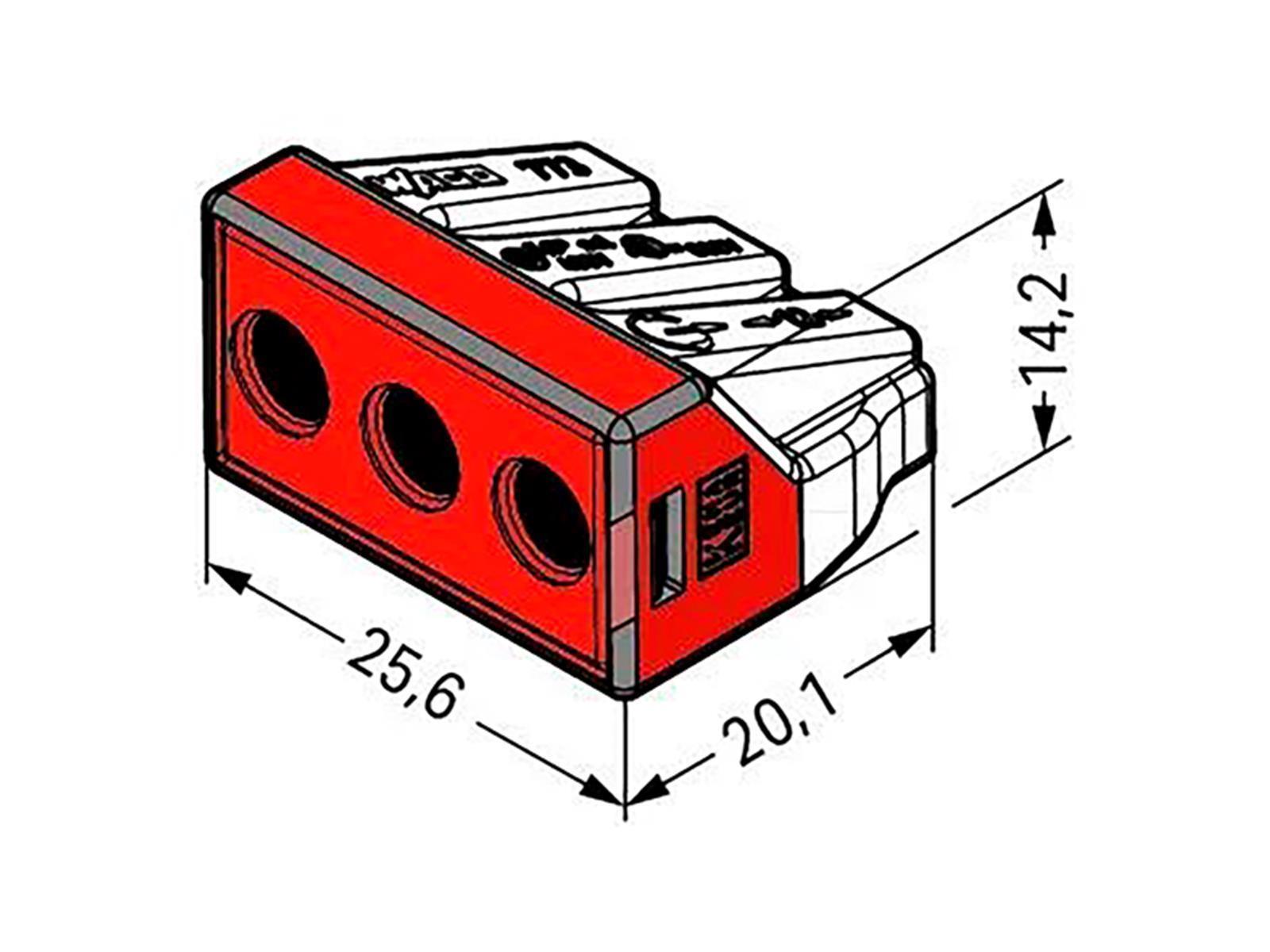 Produktinformationen "Verbindungsdosenklemme WAGO, ein- und mehrdrähtige Leiter, max. 6mm², rot"