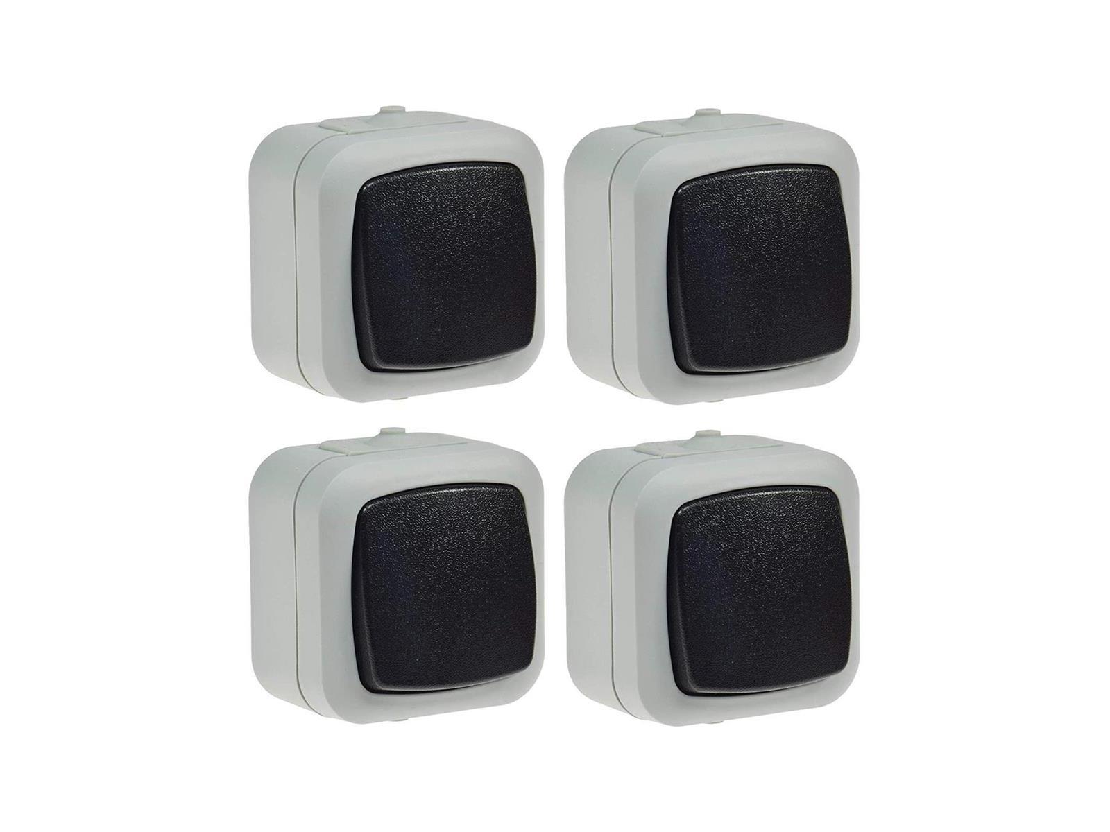Produktinformationen "Wechsel Schalter Feuchtraum IP44 Aufputz 250V 10A Schaltelement in geschütztem Gehäuse mit Wippe Grau (4 Stück)"
